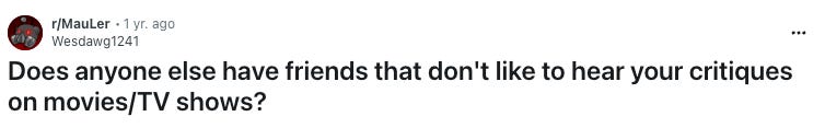 Writing forces permanence and specificity into your ephemeral relationship with art. Your friends will mock your film journal. (In Mel Robbinsā voice: LET THEM). Your classmates will roll their eyes at your Substack. (In Mel Robbinsā voice: NOW LET ME). Write anyway. The audience for your early attempts at criticism consists entirely of one person. The future version of yourself who will look back and witness the exact moment you started seeing rather than just looking.
