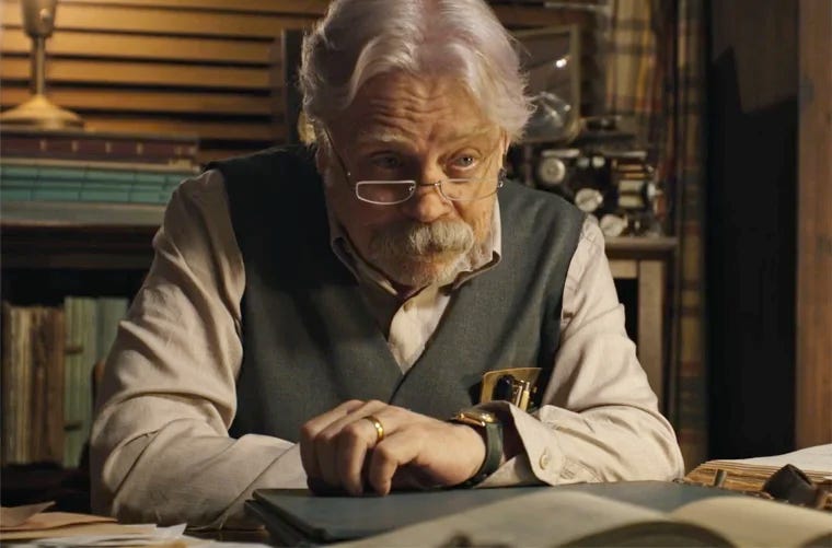 The film keeps rewinding. Back to Chuck’s childhood, to the Victorian house where he lived with his grandparents after his parents died. His grandmother taught him to dance in the living room. His grandfather Albie—bitter, sardonic, drowning in whiskey after losing his son—had one rule: Chuck could never enter the cupola, the locked attic room at the top of the house. “It’s full of ghosts,” Albie told him. “People I saw before they died.”
